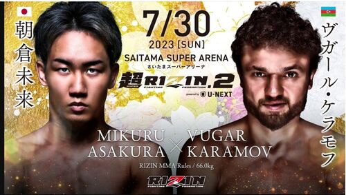 #超RIZIN2 決定カード朝倉未来THE OUTSIDER 2階級王者ーーーーーーヴガール・ケラモフ @vugar_karamov7/30(日)14:00開始~(予定)さいたまスーパーアリーナチケット一般発売6/25(日)10:00~https://t.co/QxThrciLuK pic.twitter.com/tP9ROtXt3X— RIZIN FF OFFICIAL (@rizin…