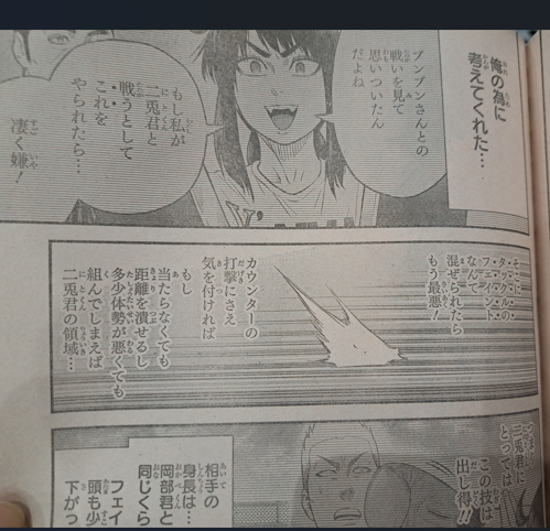 数号前、物語でいえば主人公のトーナメント1回戦の話なんだけど、基本的に寝技はずっと伝統武道を祖父に学んでいてプロとやりあえるほど強いけど、打撃は初心者…な主人公が、ジム仲間からこういう作戦を授けられる。