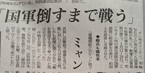 チン州の連合部隊が国軍部隊に総攻撃を仕掛け、約40人を殺害し全滅させた…作戦を指揮した「チン防衛隊(CDF)」のリアンカン司令官は…「勝因は小型ドローン攻撃。ほぼ全員がドローン空爆で死亡した」と語った