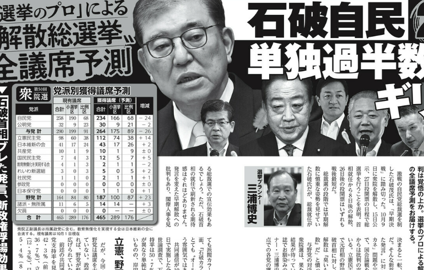 だから、各社も各評論家、あるいは市井にうごめく「選挙のプロ」たちも予想に力を入れるのですが…前回、かなりの大手も外す中でぴたりと与党の議席数をあて、名を知らしめたのが選挙プランナー(なんか、業界に蠢いていそうですよね…)の三浦博史さん。