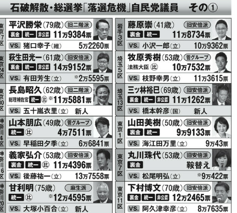 下村、萩生田は生き残るが丸川珠代がボーン。