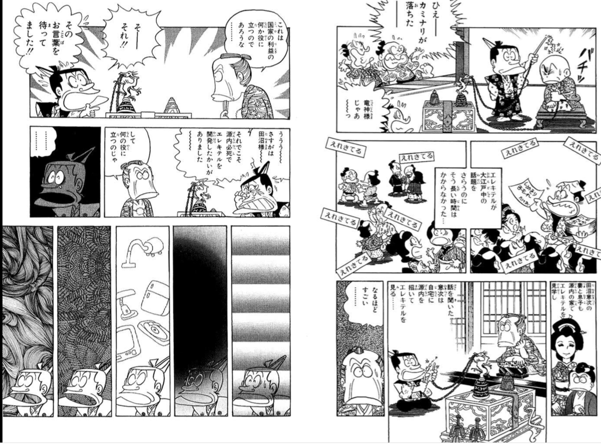 そして…「学問と、世の中の役に立つ」に関しては、この前「べらぼう」に登場したエレキテルを巡って、こんな印象的な場面がみなもと太郎「風雲児たち」で描かれた